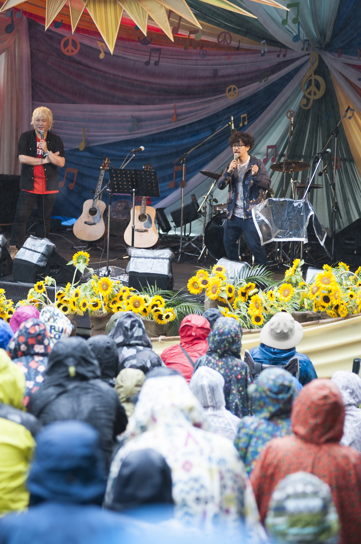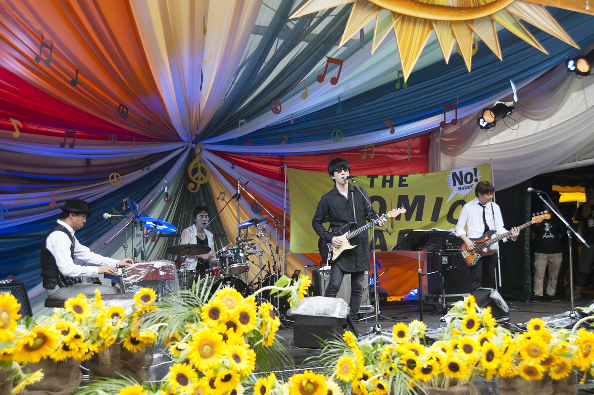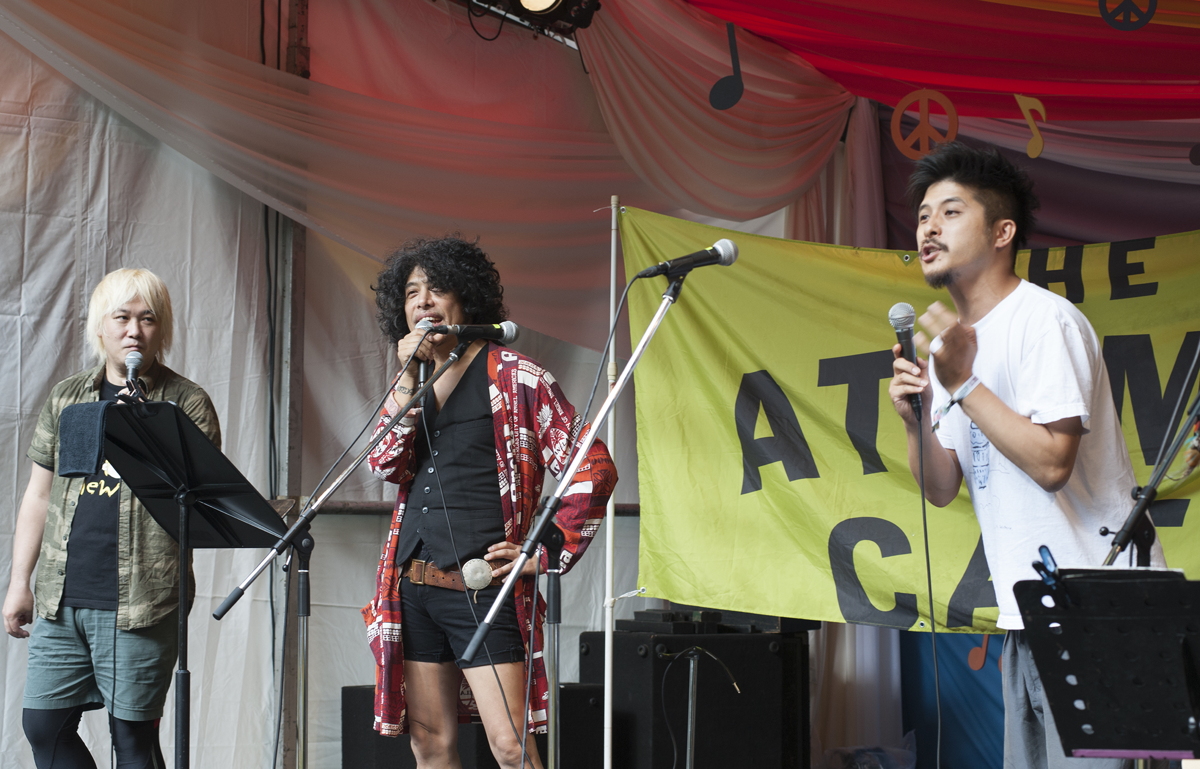 今年もGypsyAvalonでアトミック・カフェ・トークとライブを行った。フジロックでのアトミック・カフェの開催は今年で6年目。今年も総合MCは津田大介氏。28日金曜日のトークゲストはグループ魂の富澤タク。ライブは富澤タク率いるNumber the.。トークには富澤の他に泉田元新潟県知事がステージに上った。もちろん泉田氏が自民党から立候補するなんて誰も思っていなかった。泉田元知事は行政という観点から、富澤タクは福島県出身で原発事故から避難した家族を持つ立場から原発について語った。泉田元知事が原発の持つ軍事的な側面の問題を語ったのに対し、富澤タクが日常生活からとらえた原発の怖さを語ったのが印象的だった。その2つの視点は我々の中にも同時に存在する。感情的な部分と政治的な部分。相反する部分もあれば、そうでない部分もある。我々が市民目線で訴えるべきは、まずは、今もなお避難生活を余儀なくされている人たちがいるという事実、廃炉がなかなか進まない事実だろう。政府自民党は、その事実に向かい合えてないばかりか、再稼働に原発の輸出と原発依存に今も傾倒している。再生可能エネルギーと共に原発の比率をあげようというのだ。果たしてその原因はどこにあるのか。日米の原子力協定なのか、原子力政策の転換が銀行を潰すことになるからか。まず政治的な問題をクリアしないと、それは解決しないのか? アメリカも中国も東京電力福島第一原発事故を受けて、脱原発をすすめているのに? 政治的な視点は大事だが、政治的なことを理由に目の前で苦しんでいる人たちを放置しているのではないか? その2つの視点を同時にもって、物事を動かしていかないといけないのではないのか? 果たしてその政治は今も避難している人たちに希望を与えているのか? 核の問題とか今言っている場合なのか? 富澤タクが指摘している問題点と泉田氏が指摘する問題点を乖離させていることがそもそもの問題なのではないか? では誰が乖離させているのか? それは何のためなのか? 銀行のためか? オリンピックのためか? トークは、初日からもやもやが立ち込めていた。トークの後は富澤タク率いるNumber the.のライブ。今年のフジロックは3日間、天気が悪かった。Number the.のステージの時は、そのピークと言っていいくらいの土砂降りだった。逆にそれがメンバーの心に火をつけた。アグレッシブなビート・ナンバーを次から次に繰り出し、会場を盛り上げた。ちなみに富澤タクは、この日、グループ魂(グリーンステージ)、Number the.(Gypsy Avalon)、ソロ(木道亭)と八面六臂の活躍だった。