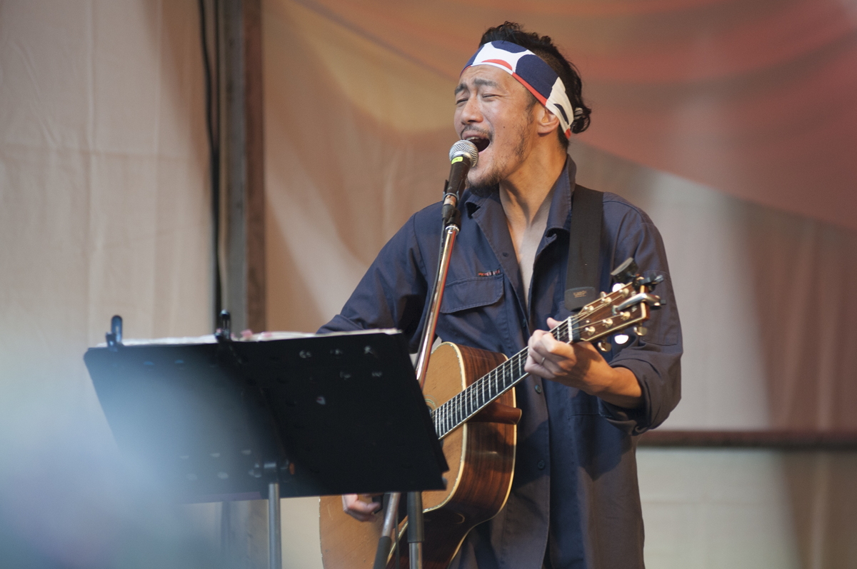 そのソーラーブドウカンのオーガナイザーである佐藤タイジが30日の日曜日のステージに登場した。トークは津田大介氏、佐藤タイジ、坂口恭平氏。坂口恭平氏はモバイルハウス「0円ハウス」をつくって話題になった人物だ。東京電力福島第一原発事故によって熊本に移住し、「0円ハウス」をつくることになった。ただ避難するのではなく、そこから新生活を始めてみようという、坂口恭平氏なりの前向きな提案だ。しかしながら、坂口恭平氏のトークは暴走し、途中で何だかよくわからない展開になった。要所で津田大介氏が手綱を引いて、何とか丸く収まったが、どんなトークだったかあまり記憶に残っていない。坂口氏は「0円ハウス」から数年が経って、本もたくさん出版し、その間、いろんなものを背負ってしまったのかもしれない。もはや「0」でいることは難しくなってしまったのだろう。そんな印象だった。太陽光発電の可能性をひたむきに追求している佐藤タイジの話をもっと聞きたかった。ライブはその佐藤タイジが松崎ナオを迎えて行った。彼らはRCの『カバーズ』から1曲「明日なき世界」を披露した。その後、松崎ナオと佐藤タイジがそれぞれのステージを展開。2人ともとても素晴らしいステージを見せてくれた。松崎ナオのステージを見るのは初めてだったが、帰宅後にサブスクリプションで探して何度も聴いた。佐藤タイジは「太陽光だけでフェスを俺がやれるんだから、国が自然エネルギーにシフトできないはずがない」「それをやろうと国のリーダーが言わないだけ」といった。全くその通りだと思う。その思いをこめて、松崎ナオと佐藤タイジでシアターブルックのナンバー「もう一度世界を変えるのさ」を歌った。タイマーズのソウルが宿っている曲だ。