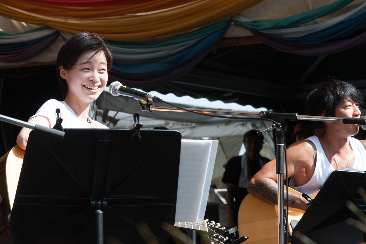 初日のライブステージには片平里菜さんが登場(ゲスト:TOSHI-LOWさん、細美武士さん)。彼女はそれまでの所属事務所を辞めてひとりで活動を始めたばかり。その最初のステージとなった。福島出身の彼女は今も福島に住んでいるという。学校を卒業後、学生時代の友人とは普通は同窓会とか成人式で会うもの。ところが彼女は甲状腺の検査で会ったという。そのエピソードを悲しさとやるせなさをにじませながら話してくれた。「原発事故を通して生活と政治は密接に結びついていることをあらためて実感した」とも。「故郷を思ったときに原発があった方がいいのかない方がいいのか(答えは)すごくシンプルだと思う」という言葉がすべての国民の気持ちを表していたのではないか。