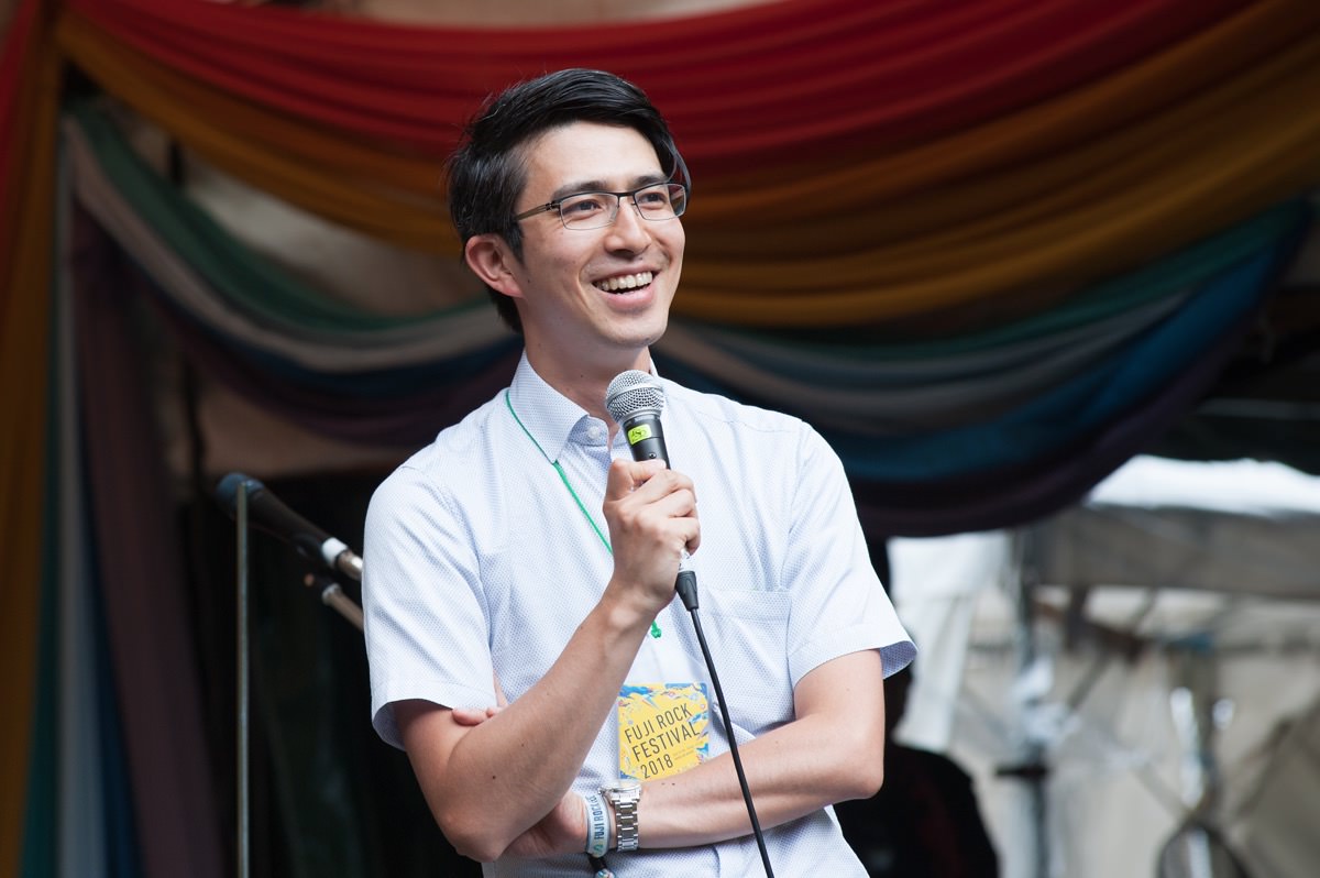 初日はトークゲストに星田英利さんが登場。3.11の際の東京電力福島第一原発事故を受け、SNSで自らの意見を積極的に発信。今でも社会問題について積極的に自分の考えを述べている。考えていた以上に、自分の発言に影響力があると知った星田さんは芸名の「ほっしゃん。」から本名へと「改名」。個人として意見を発信することにしたそうだ。それでもタレント仲間からは「やめておけ」という声は止むことはなく、タレントとしての仕事は減ったという(現在は俳優として活動中)。言うまでもなく、どんな立場の、どんな職業の人間であれ、社会問題に対して意見を発信するのは当たり前のこと。そこへバイアスがかかったり、仕事から外したりすることの方が問題だ。東京電力福島第一原発事故と向き合えば、批判の声が出てきて当然。自民党政権はじめ原発マネー(税金)を当てにしながら原発を推進する企業のバイアスによって声が上げられない状況はむしろ日本の危機といっていい。そのなかで星田さんは、ひとりの人間として、一市民として声を上げることを選択した。星田さんは「仕事仲間は減ったかもしれないが、人間としての仲間は増えた」という。また星田さんは他人の評価があまり気にならなくなったという。この場合の「他人」とは、逼迫した状況下におかれながらも政府や官僚や東京電力に忖度する人たちのことを指す。本音を言えなくなった人たちの星田さんに対する評価は本当の評価とはいえるのかどうか。星田さんの発言は市民の本音。星田さんがバッシングされるのは本当のことを言われると政府の政策が破綻してしまうからだ。日本の原発政策はもはや「裸の王様」だ。星田さんは最後に「せっかくフジロックに出演したのだから歌をうたって帰りたい」と言って、歌(校歌)を披露してくれた。